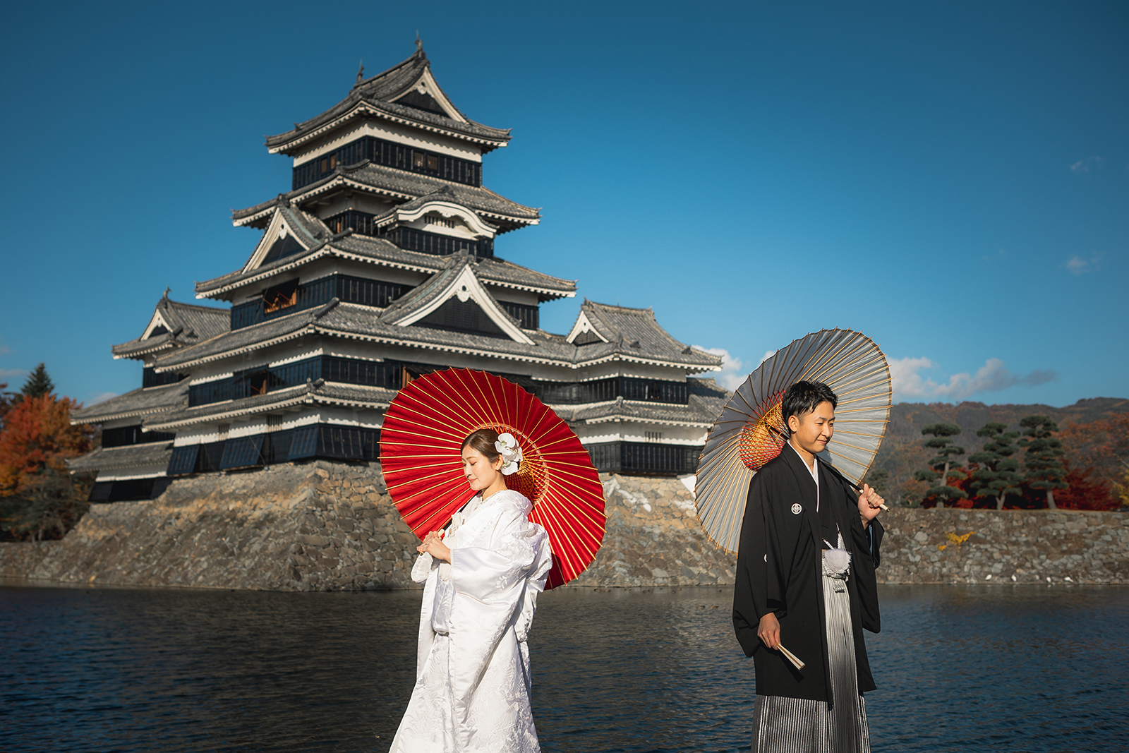 国宝松本城で残すフォトウエディング。春夏秋冬どの季節もお楽しみ頂けます。